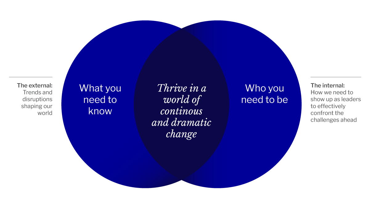 We tailor our custom programmes to your organisation’s individual needs, calling on our faculty of world-class speakers and experts to curate a high-energy, high-impact experience that will leave your teams excited and empowered about what lies ahead.